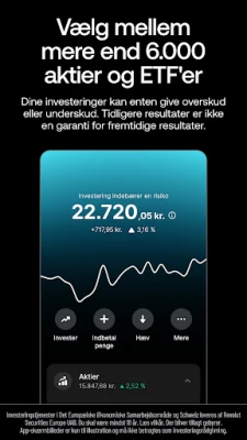 Udover smart forbrug gør Revolut det legende let at sende og modtage penge. Overfør og anmod om midler i over 30 valutaer med et enkelt tryk, uanset hvor modtageren befinder sig. Chat, del og afregn fælles udgifter i samme flow, og oplev øjeblikkelige overførsler mellem Revolut-venner. Er du klar til at udforske nye finansielle horisonter? Dyk ned i aktiehandel fra så lidt som 1 EUR, og vælg mellem mere end 2.000 aktier, inklusive verdens største virksomheder (andre gebyrer kan forekomme). Med en månedlig kurtagefri kvote og adgang til vores Learn-kurser er vejen banet for din investeringsrejse. Hold styr på budgettet med øjeblikkelige forbrugsnotifikationer, smarte analyseværktøjer og påmindelser om kommende betalinger, så du altid er et skridt foran.