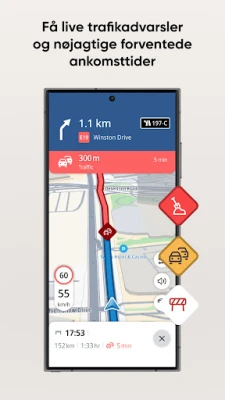 Hold dig et skridt foran trafikken takket være TomToms realtidsopdateringer. Modtag øjeblikkelige advarsler om vejarbejde, ulykker eller trafikpropper forude, hvilket giver dig mulighed for at undgå forsinkelser, før de opstår. TomTom justerer automatisk din rute, når der opstår forhindringer, så du kan fortsætte din rejse så effektivt som muligt. Men TomTom er mere end bare et GPS-værktøj; det er din komplette kørselsassistent, der advarer dig om fartkontroller og viser din aktuelle hastighed i forhold til fartgrænsen. Vælg den rute, der passer dig bedst – den hurtigste, den korteste eller den mest brændstofeffektive – alt sammen med et klart overblik over trafikflowet.
