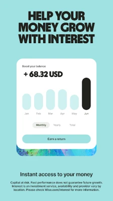 Hold op til 40 forskellige valutaer på din Wise konto uden månedlige gebyrer eller vedligeholdelsesomkostninger i de fleste tilfælde. Veksel valutaer øjeblikkeligt til den reelle vekselkurs med minimale omkostninger, eller opsæt automatiske konverteringer ved specifikke kurser og følg markedsbevægelser med kursadvarsler. Wise udvider også dine finansielle muligheder med "Assets", hvor du kan udforske investeringer i renter eller aktier med få tryk – tilgængeligt i udvalgte lande. For virksomheder transformerer Wise den globale økonomi med en specialdesignet erhvervskonto, der muliggør hurtigere betaling af fakturaer og regninger til fordelagtige kurser, modtagelse af betalinger fra kunder internationalt og nem integration med platforme som Amazon, Stripe og Xero. Som en globalt reguleret institution sikrer Wise tryghed og compliance i alle dine finansielle transaktioner. Bemærk: Kapital er forbundet med risiko, og tidligere resultater garanterer ikke fremtidig vækst.